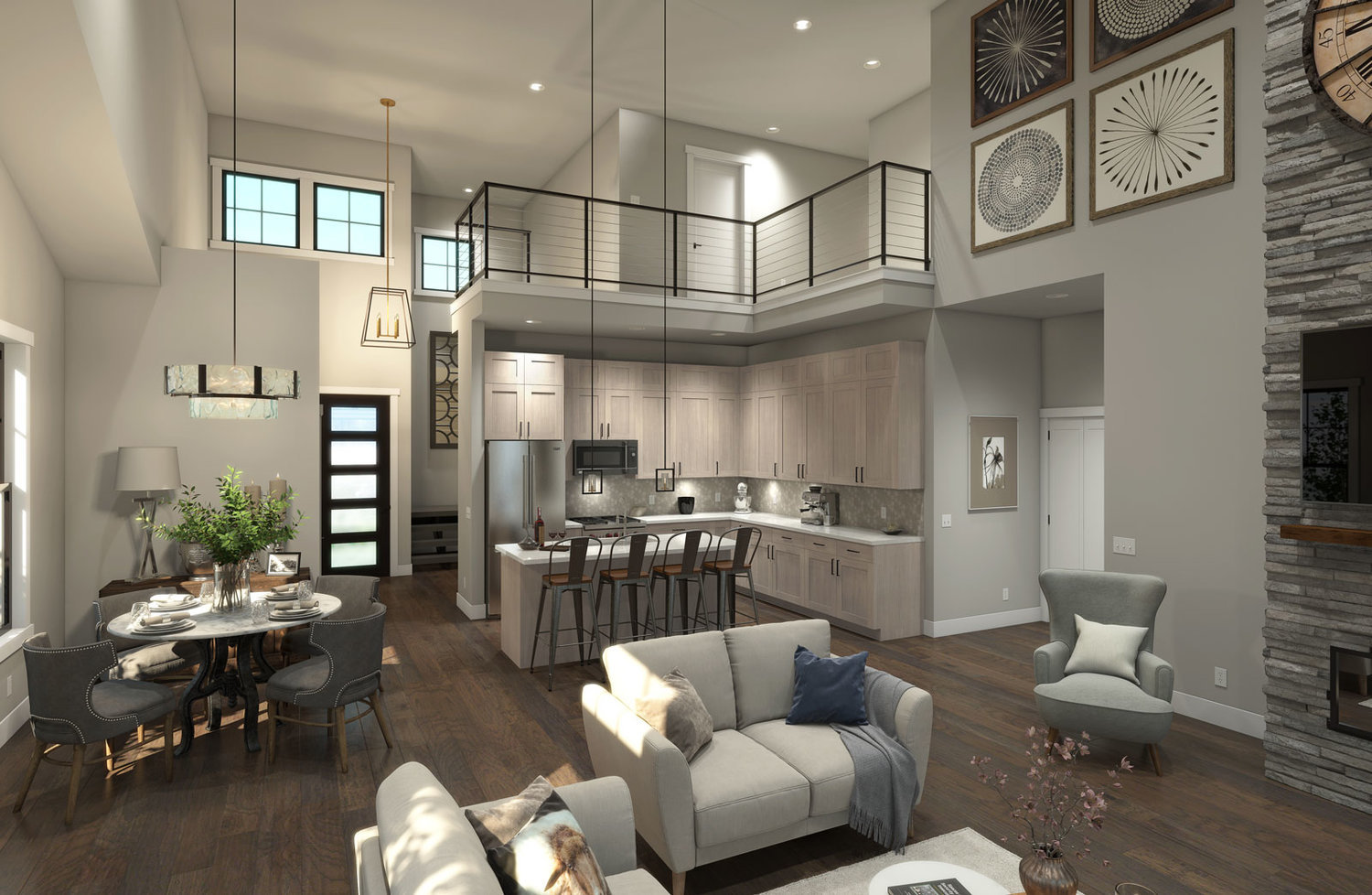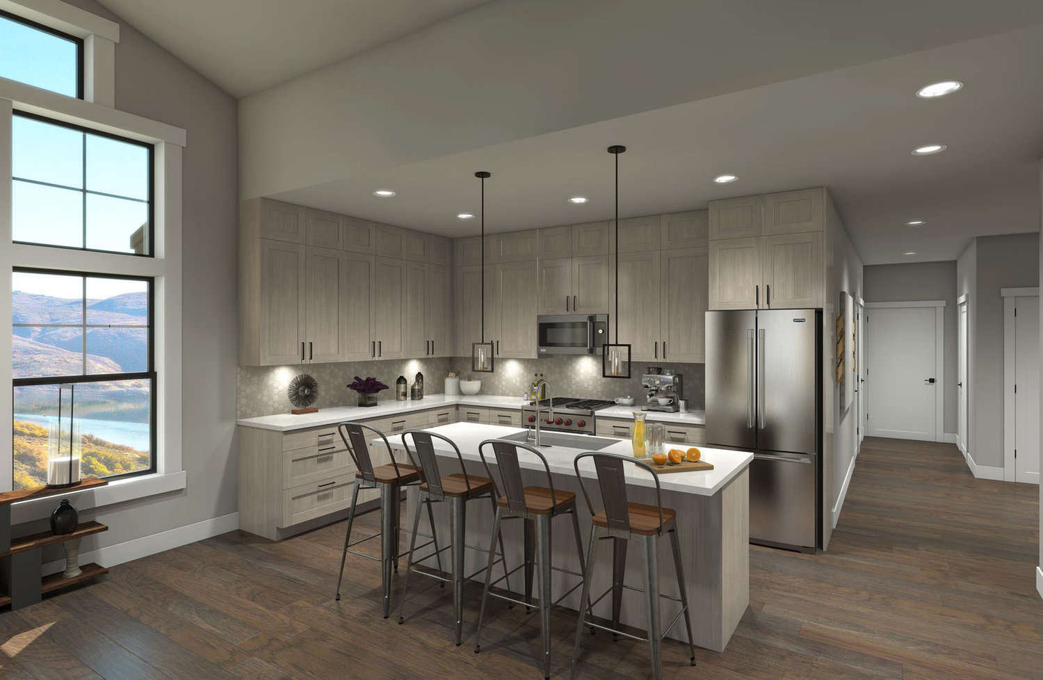 For those not needing as much space, the stacked flat condominiums offer well designed floor plans, high-end interiors, ample parking, ample storage and easy access to community and area amenities such as the clubhouse/pool, trails, skiing and water sports.